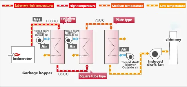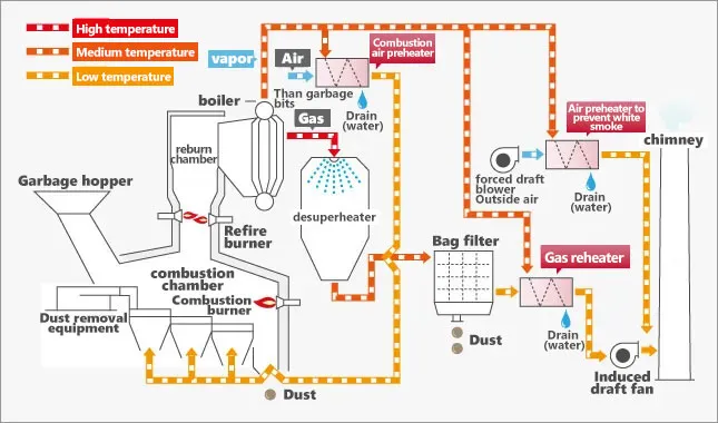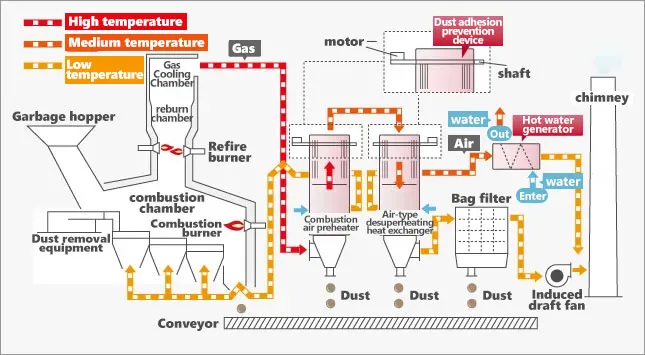 In heat exchangers at waste incineration facilities, etc., dust particles gradually accumulate inside the tubes, so operations are stopped once every one to two months and the dust is removed manually using electric brushes and high-pressure air blowers, requiring a shutdown of three days or more, including the cooling period. However, this device allows for automatic, periodic dust removal without having to stop operations. -